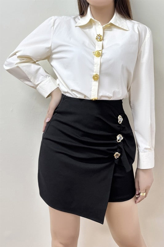Classic button-down shirt elevated with sculptural gold-tone buttons. Straight, relaxed fit with pointed collar. Long sleeves with button cuffs